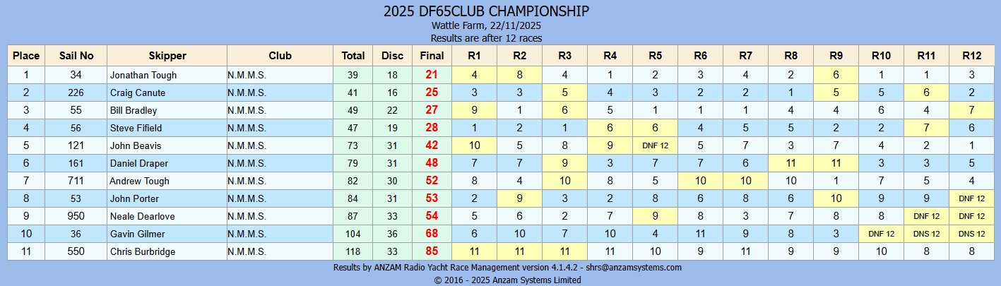 DF65 CLUB RACE: RESULTS 30AUG2025