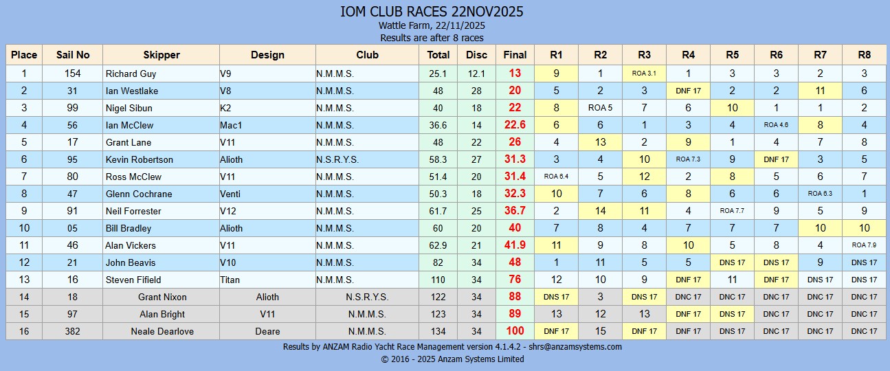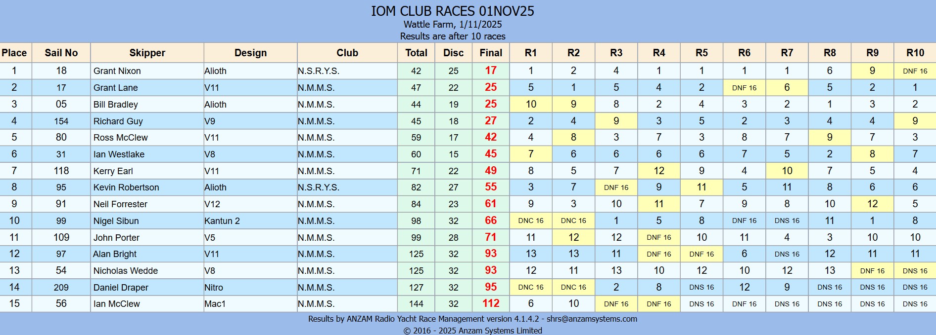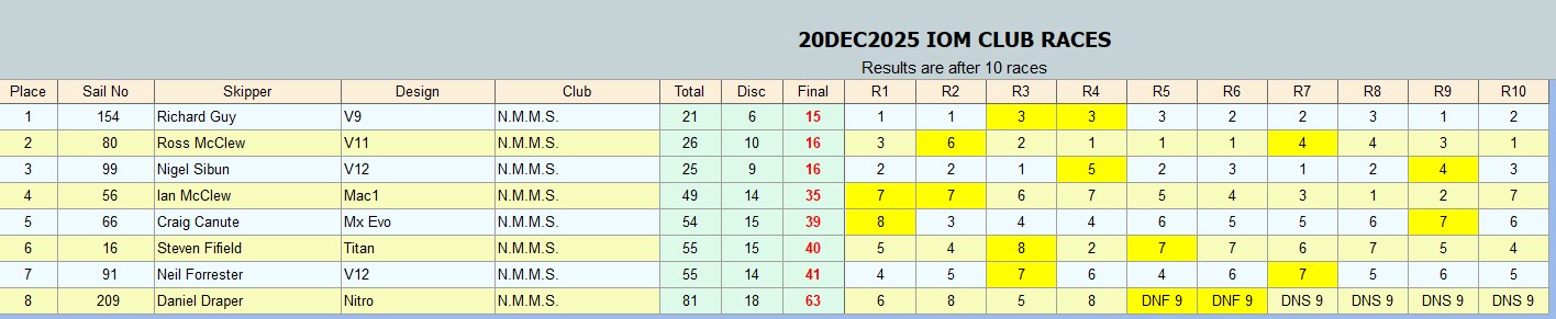 IOM CLUB RACiNG - RESULTS 16NOV24
