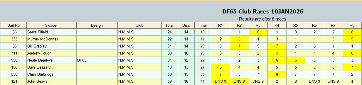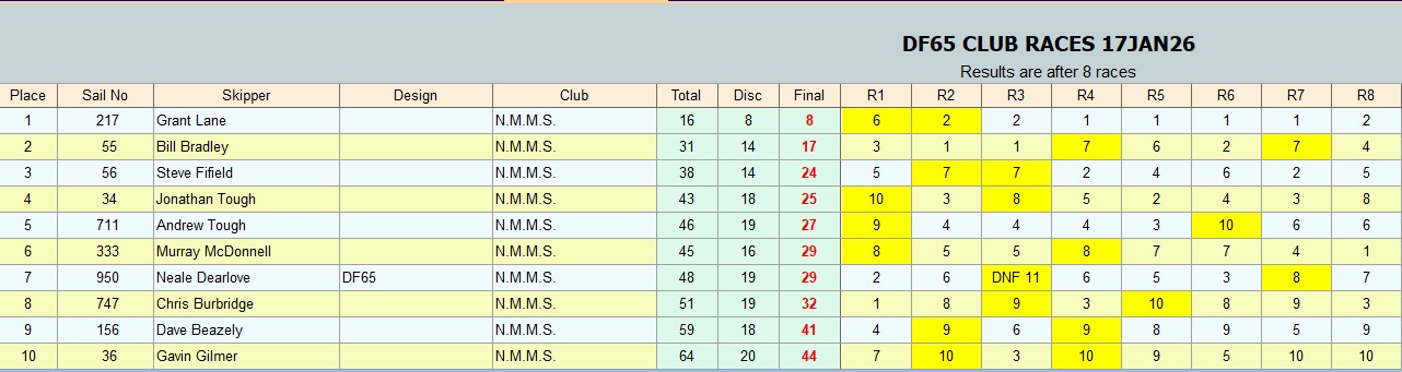 DF65 CLUB RACING RESULTS 10JAN2026