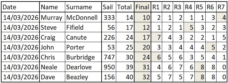 DF65 CLUB RACE RESULTS 14MAR26