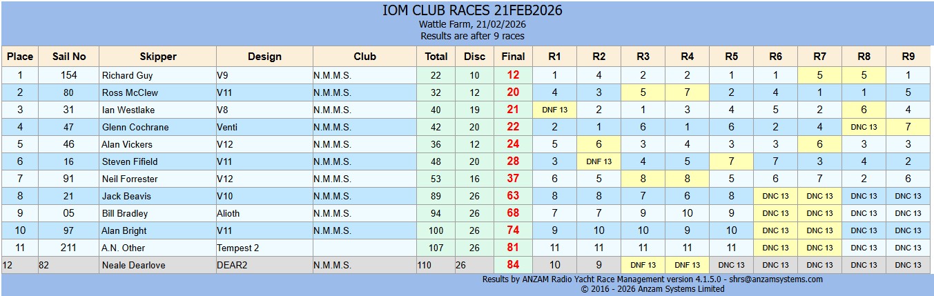 RESULTS - IOM CLUB RACES 14FEB26
