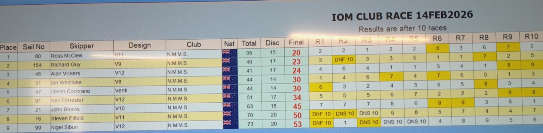 IOM CLUB RACING RESULTS 10JAN2026